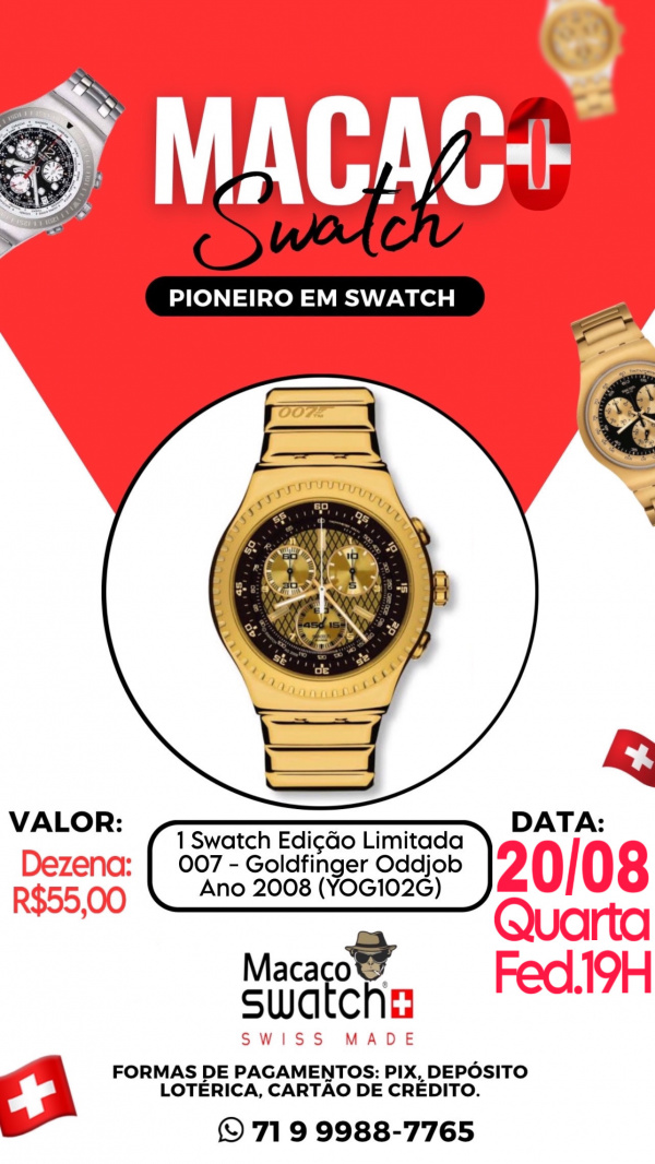 1 Swatch Edição Limitada 007 - Goldfinger Oddjob Ano 2008 (YOG102G)