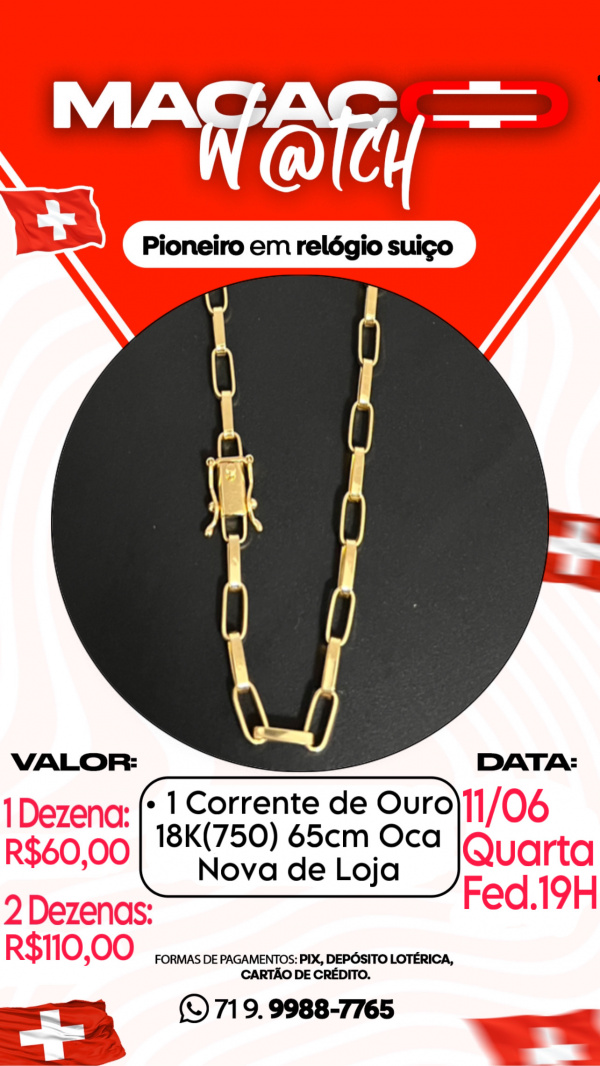 • 1 Corrente de Ouro 18K(750) 65cm Oca Nova de Loja