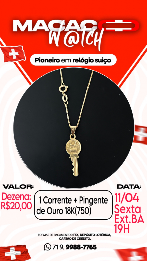 • 1 Corrente de Ouro 18K(750) Nova de Fábrica 70cm + Pingente
