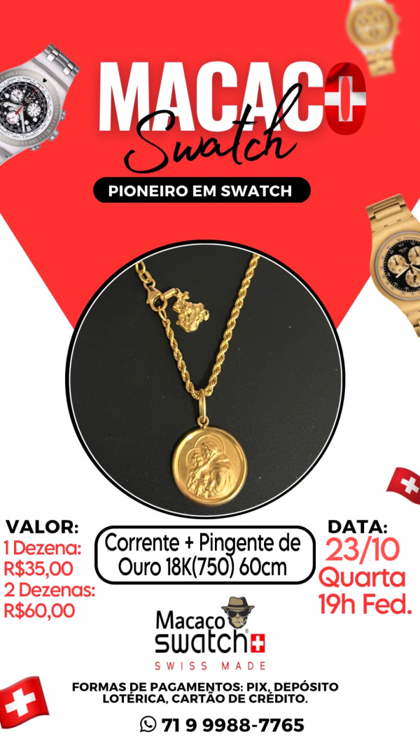 • 1 Corrente + Pingente de Ouro 18K(750) 60cm