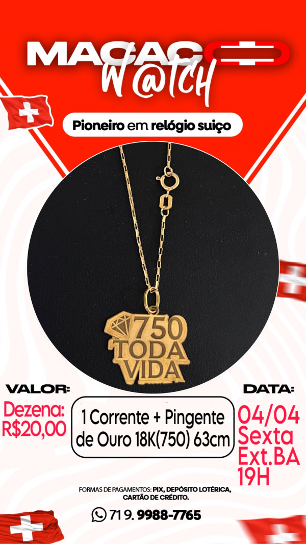 • 1 Corrente + Pingente de Ouro 18K(750) 63cm