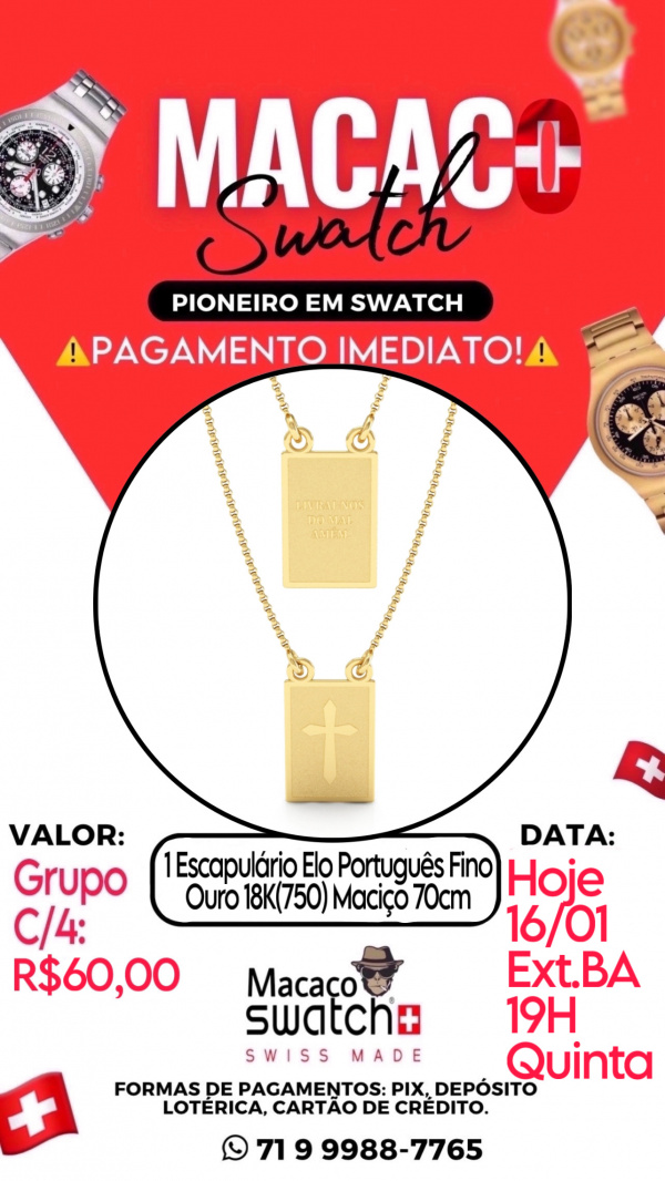 • 1 Escapulário Elo Português Fino Ouro 18K(750) Maciço 70cm
