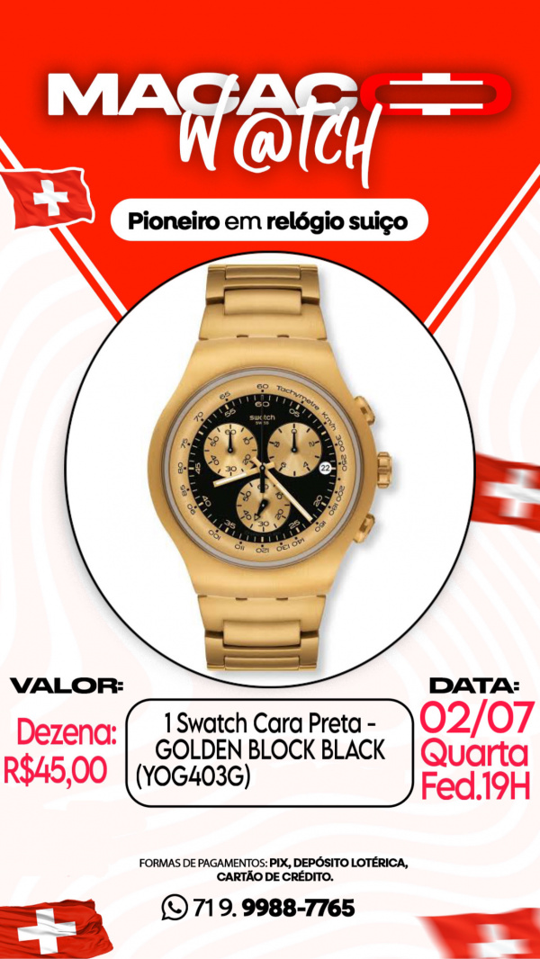 1 Swatch Cara Preta - GOLDEN BLOCK BLACK (YOG403G)