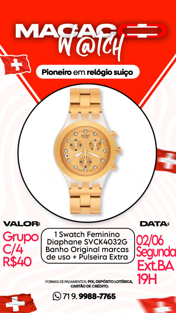 1 Swatch Feminino Diaphane SVCK4032G Banho Original + Ferramenta