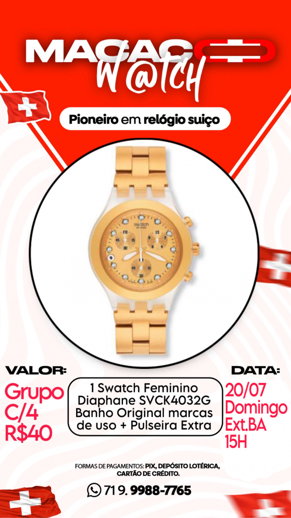 1 Swatch Feminino Diaphane SVCK4032G + Pulseira Extra