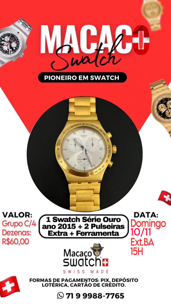 1 Swatch Série Ouro ano 2015 + 2 Pulseiras Extra + Ferramenta