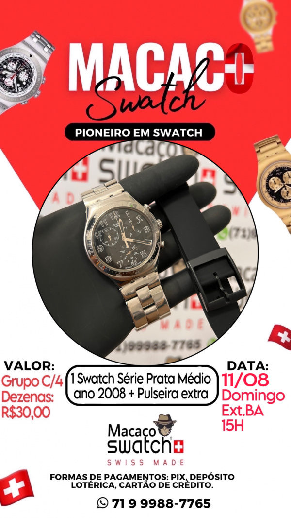 1 Swatch Série Prata Médio ano 2008 + Pulseira extra