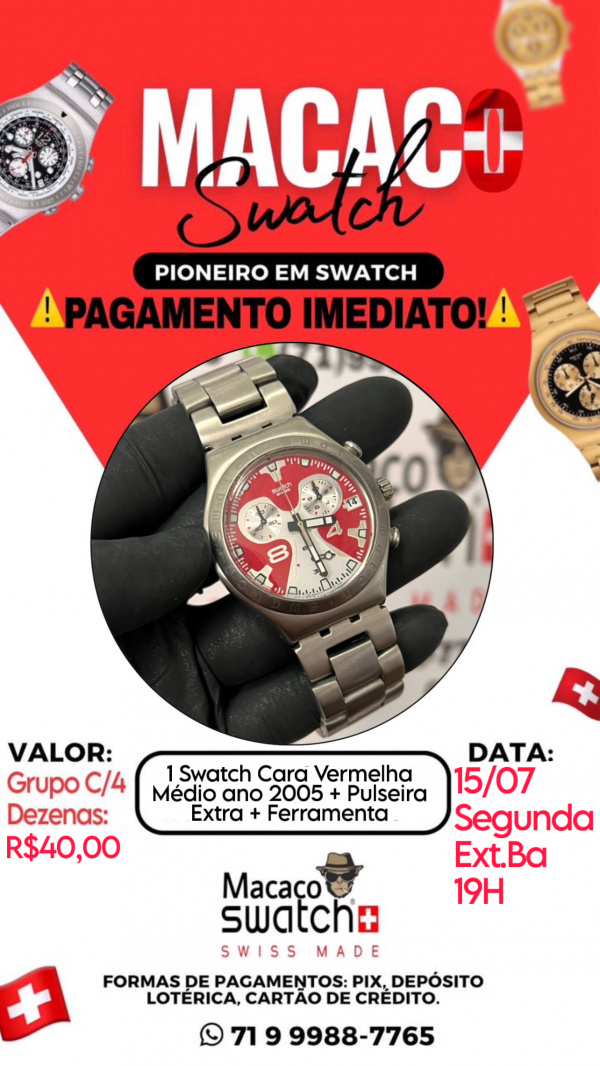 1 Swatch Cara Vermelha Médio ano 2005 + Pulseira Extra + Ferramenta