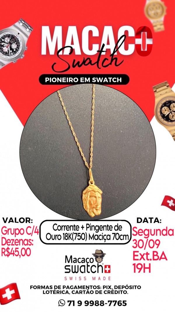 • 1 Corrente + Pingente de Ouro 18K(750) Maciça 70cm