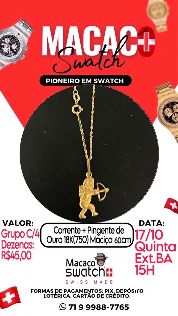 • 1 Corrente + Pingente de Ouro 18K(750) Maciça 60cm