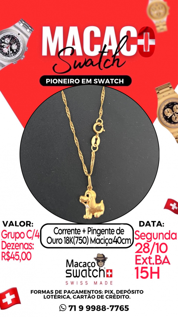 • 1 Corrente + Pingente de Ouro 18K(750) Maciça 40cm