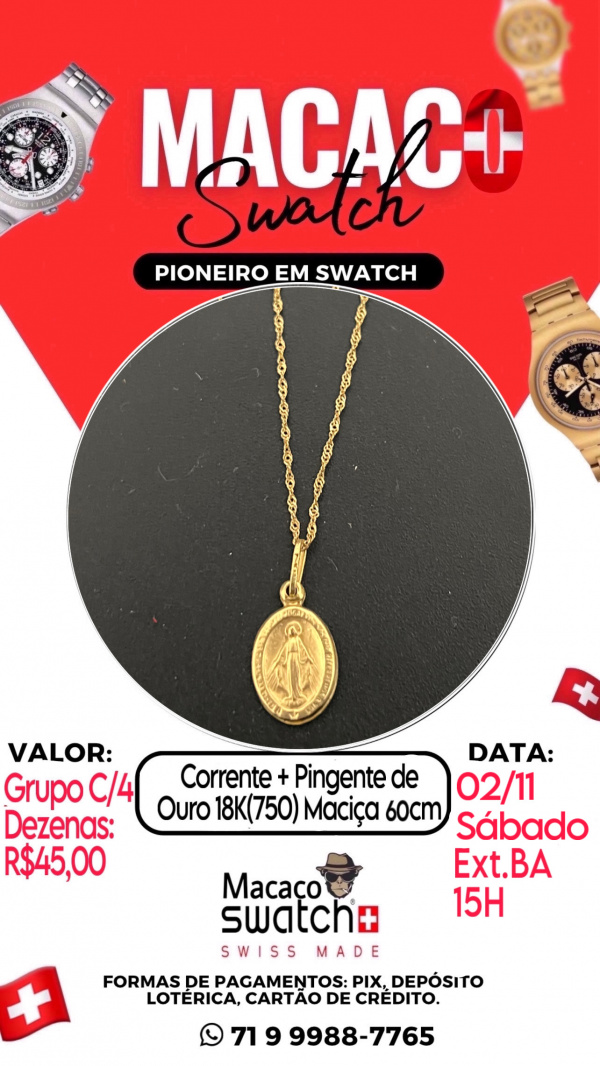 • 1 Corrente + Pingente de Ouro 18K(750) Maciça 60cm