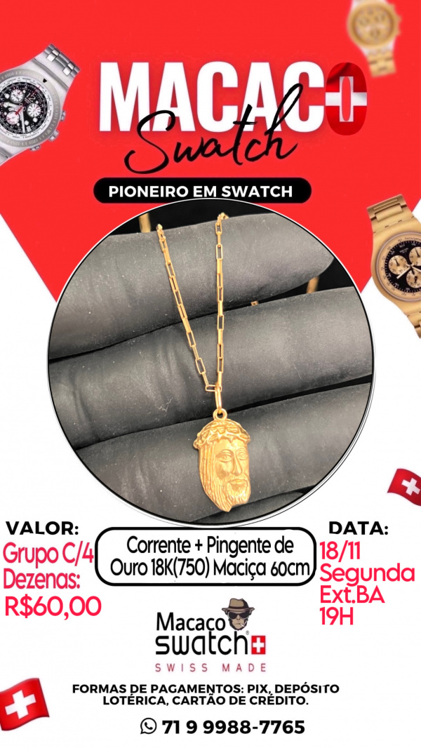 • 1 Corrente + Pingente de Ouro 18K(750) Maciça 60cm