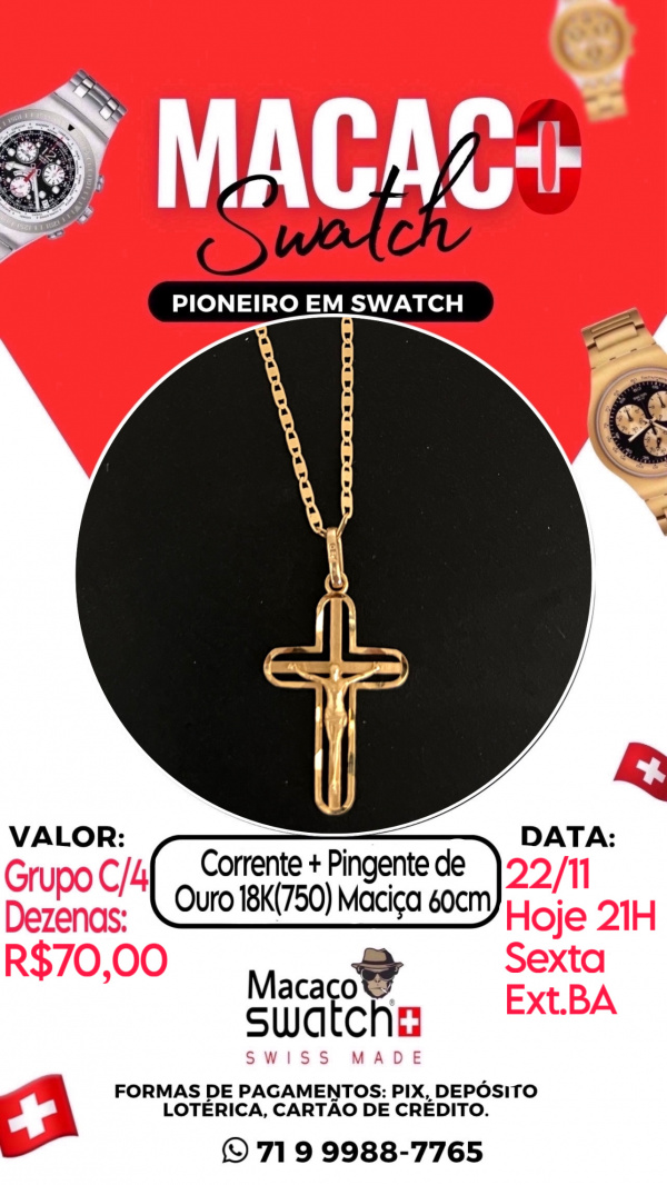 • 1 Corrente + Pingente de Ouro 18K(750) Maciça 60cm