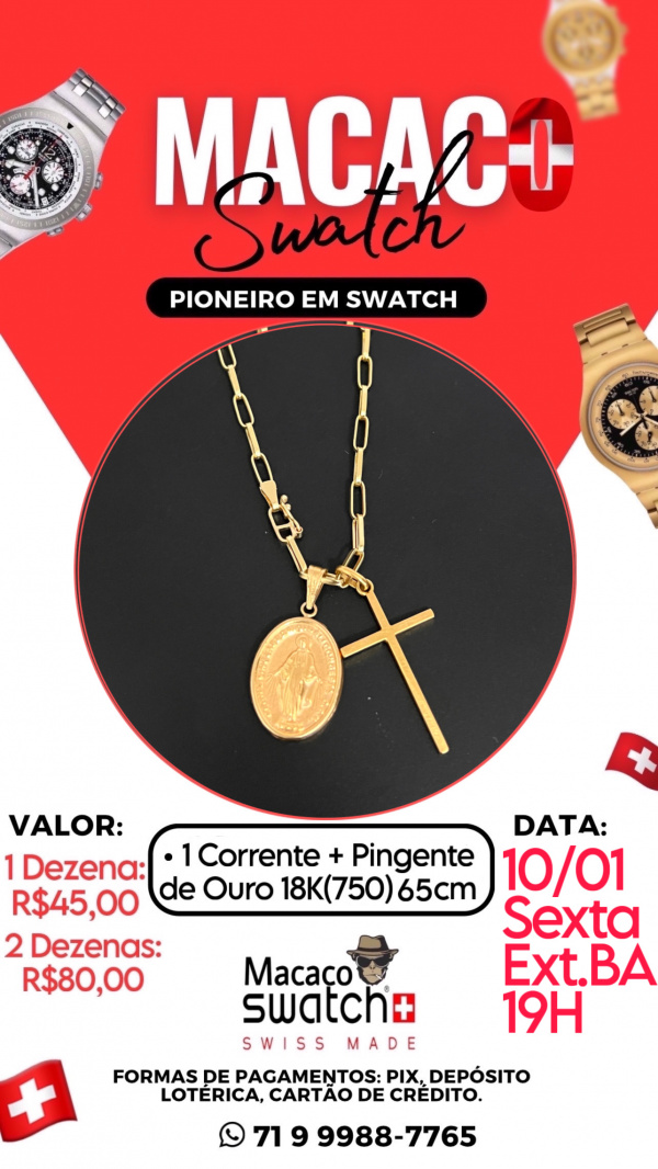 • 1 Corrente + Pingente de Ouro 18K(750) 65cm