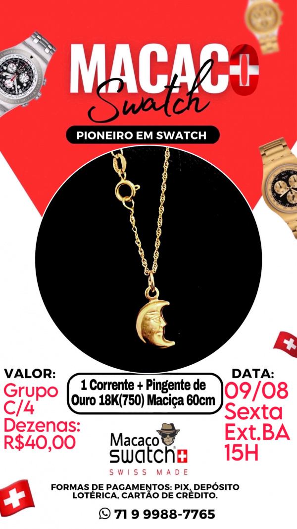 • 1 Corrente + Pingente de Ouro 18K(750) Maciça 60cm