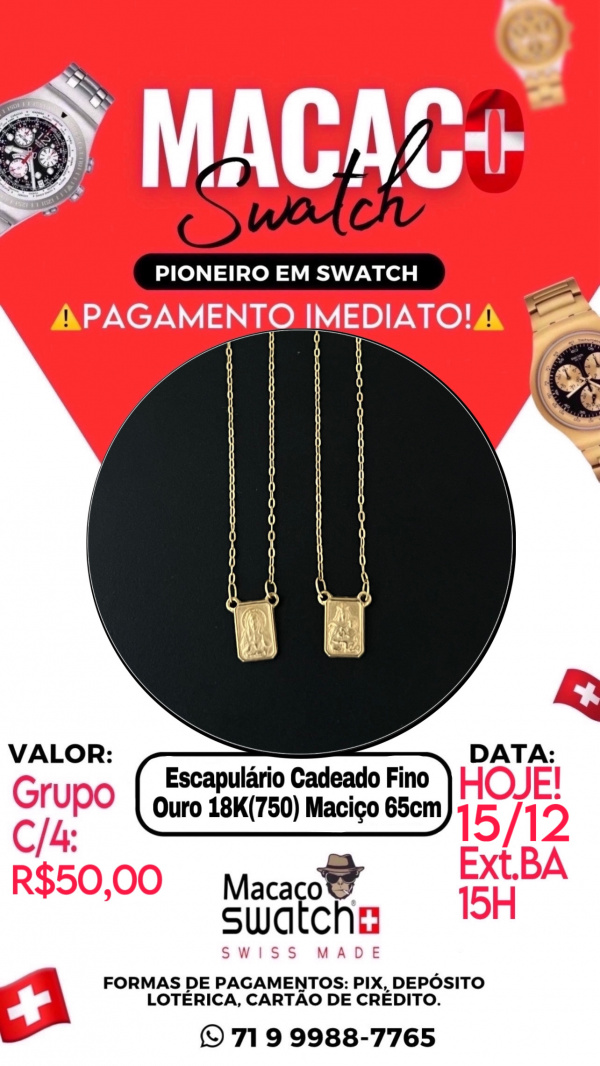 • 1 Escapulário Cadeado Fino Ouro 18K(750) Maciço 65cm