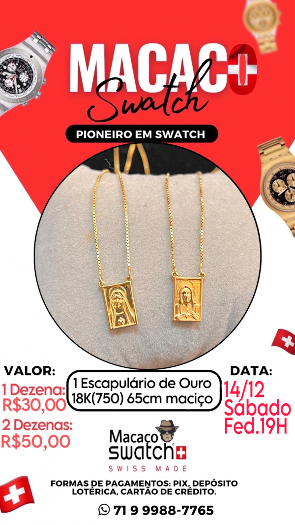 • 1 Escapulário de Ouro 18K(750) 65cm maciço