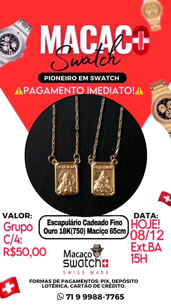 • 1 Escapulário Cadeado Fino Ouro 18K(750) Maciço 60cm