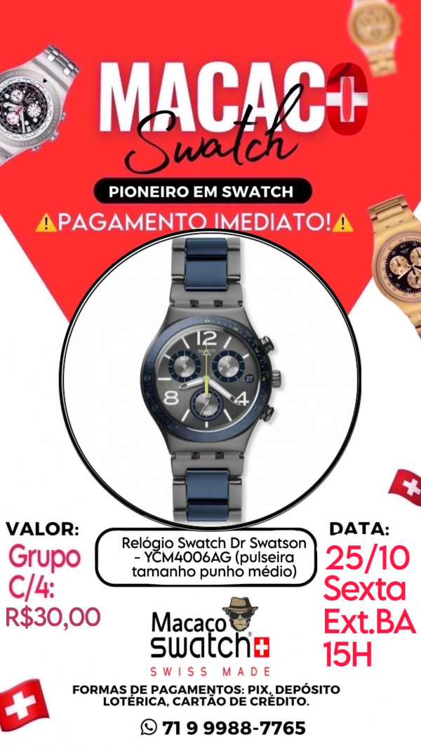 Relógio Swatch Dr Swatson - YCM4006AG (pulseira tamanho punho médio)