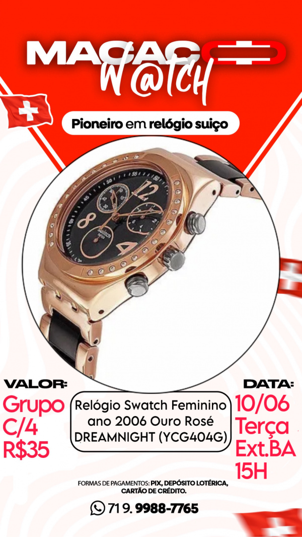 Relógio Swatch Feminino ano 2006 Ouro Rosé DREAMNIGHT (YCG404G)