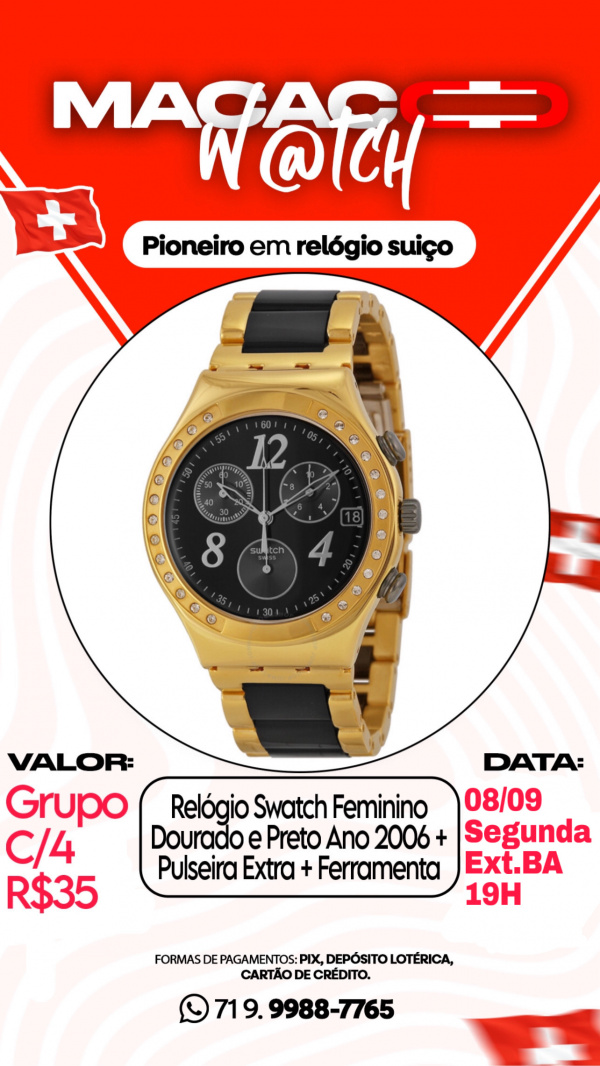 Relógio Swatch Feminino Dourado e Preto Ano 2006