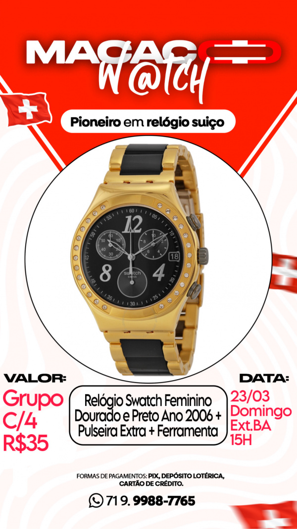 Relógio Swatch Feminino Dourado e Preto Ano 2006 + Pulseira Extra + Ferramenta