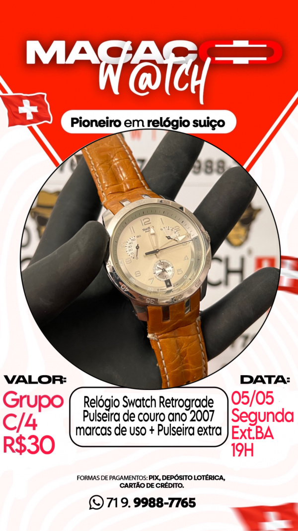 Relógio Swatch Retrograde Pulseira de couro ano 2007 marcas de uso + Pulseira extra