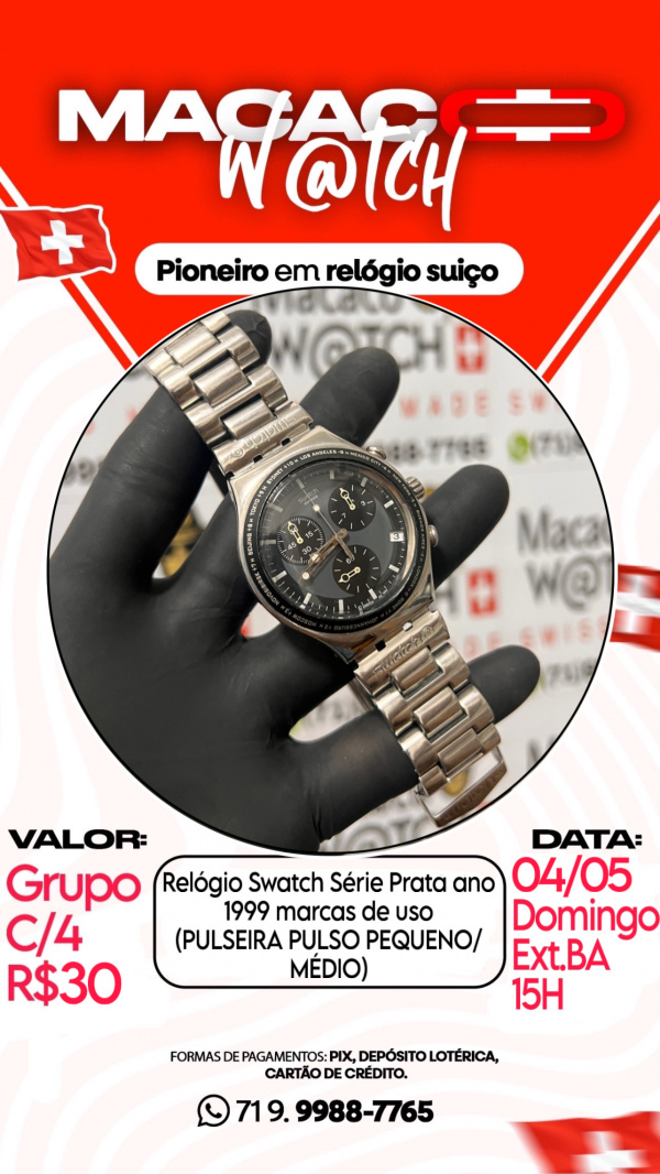 Relógio Swatch Série Prata ano 1999 marcas de uso