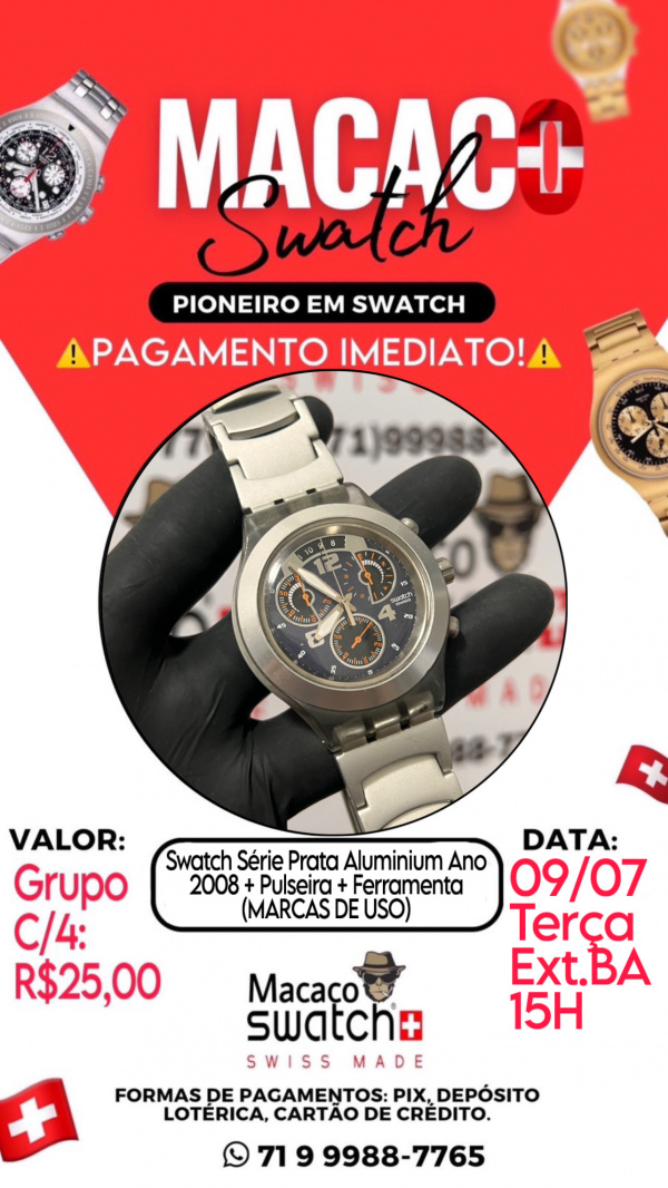 Swatch Série Prata Aluminium Ano 2008 + Pulseira + Ferramenta