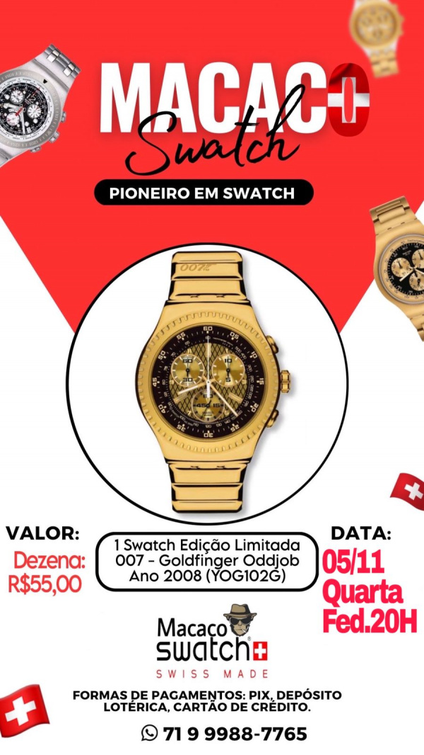 1 Swatch Edição Limitada 007 - Goldfinger Oddjob Ano 2008 (YOG102G)
