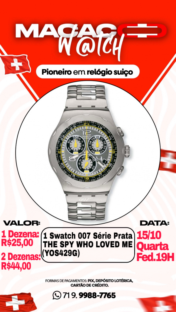 1 Swatch 007 Série Prata THE SPY WHO LOVED ME (YOS429G)