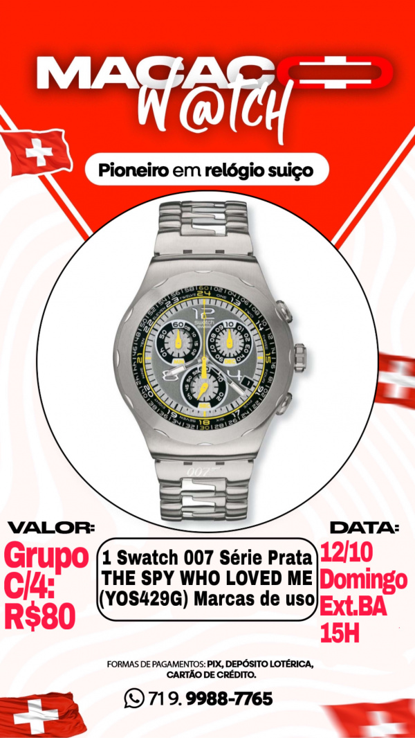1 Swatch 007 Série Prata THE SPY WHO LOVED ME (YOS429G) Marcas de uso