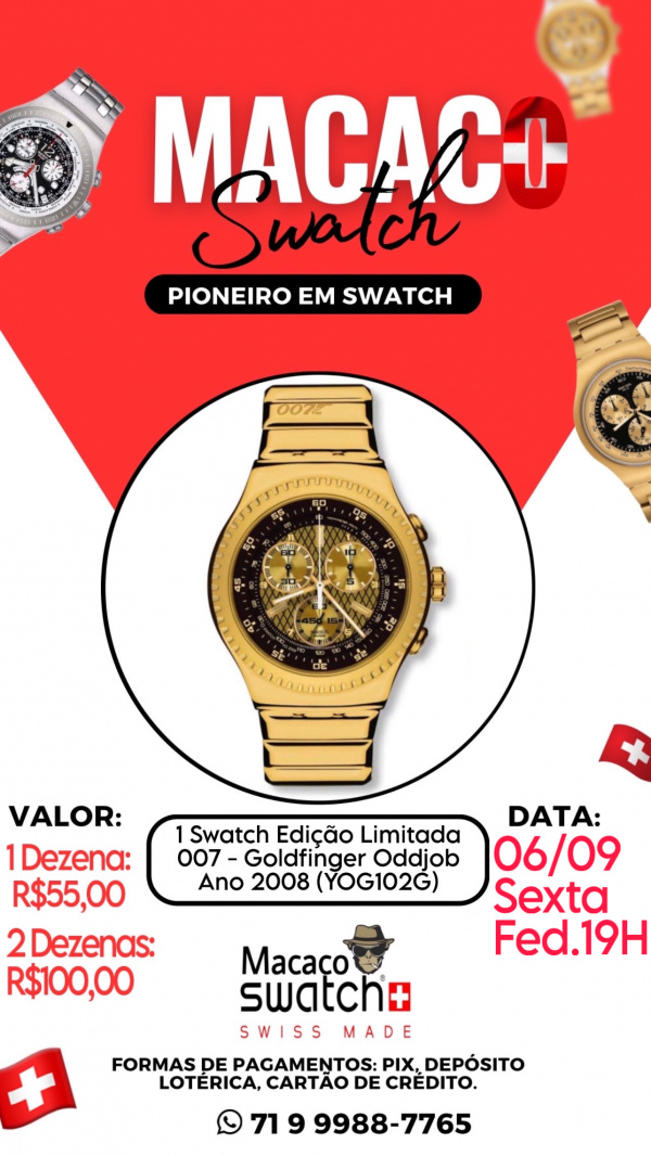 1 Swatch Edição Limitada 007 - Goldfinger Oddjob Ano 2008 (YOG102G)