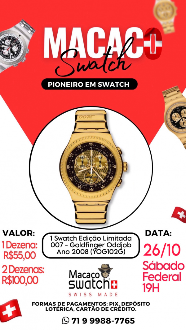 1 Swatch Edição Limitada 007 - Goldfinger Oddjob Ano 2008 (YOG102G)