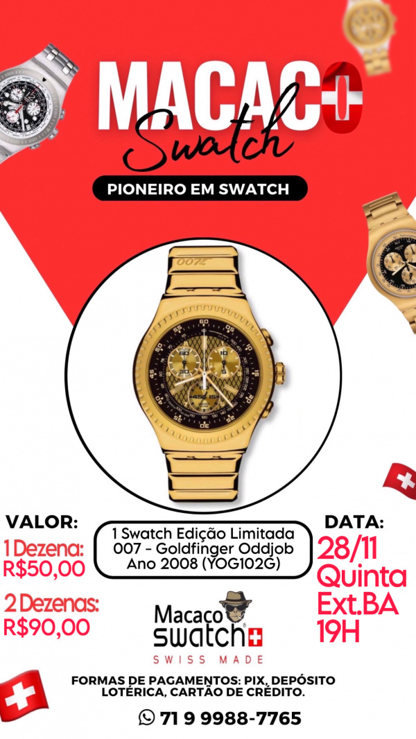1 Swatch Edição Limitada 007 - Goldfinger Oddjob Ano 2008 (YOG102G)