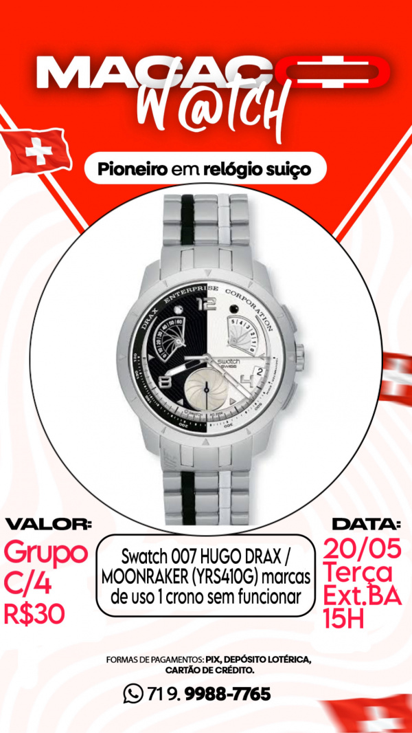 Swatch 007 HUGO DRAX / MOONRAKER (YRS410G) marcas de uso 1 crono sem funcionar