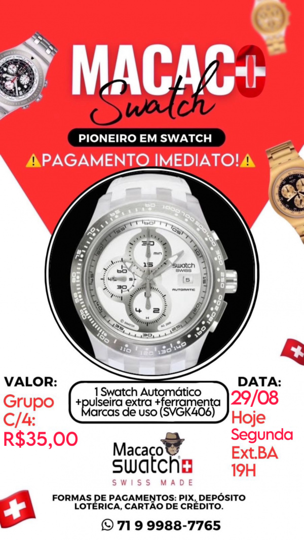 1 Swatch Automático +pulseira extra +ferramenta Marcas de uso (SVGK406)