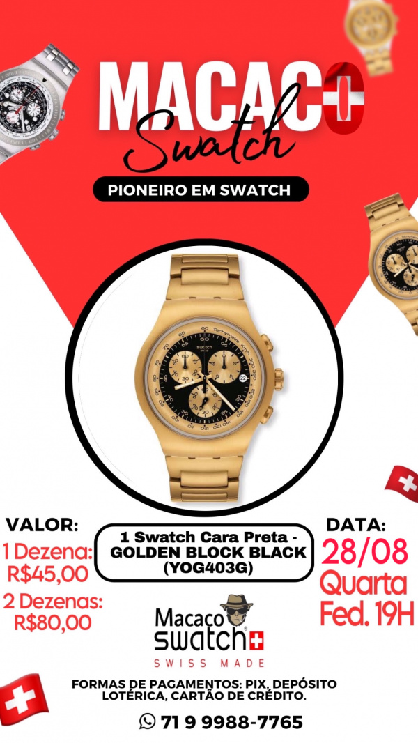 1 Swatch Cara Preta - GOLDEN BLOCK BLACK (YOG403G)