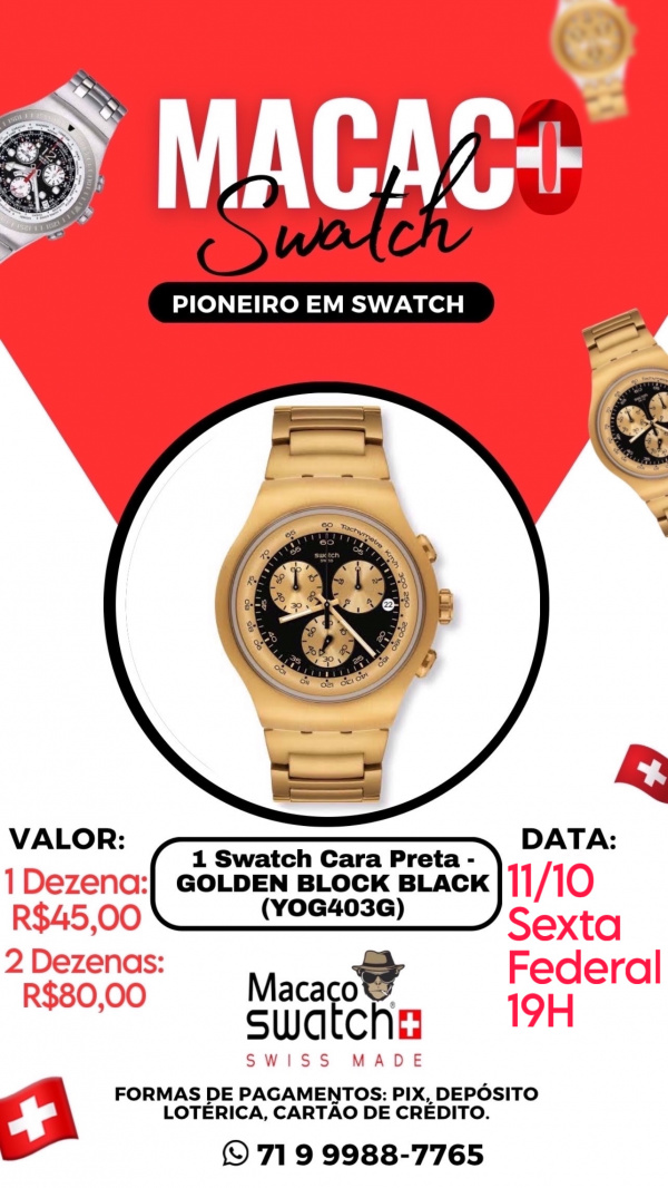 1 Swatch Cara Preta - GOLDEN BLOCK BLACK (YOG403G)