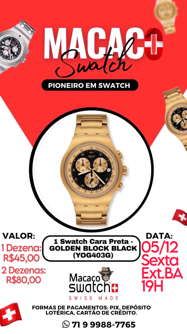 1 Swatch Cara Preta - GOLDEN BLOCK BLACK (YOG403G)