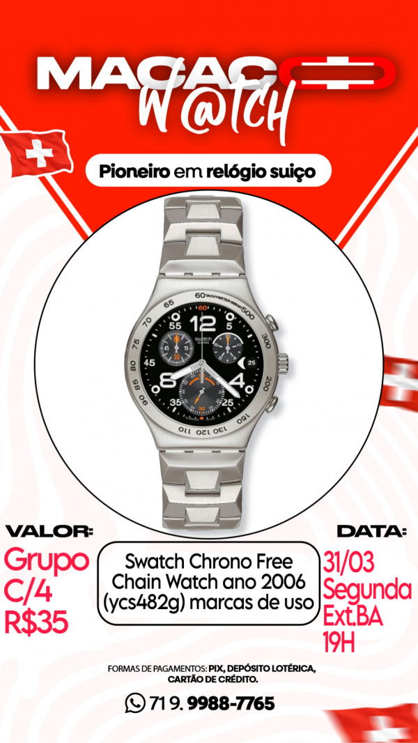 Swatch Chrono Free Chain Watch ano 2006 (ycs482g) marcas de uso