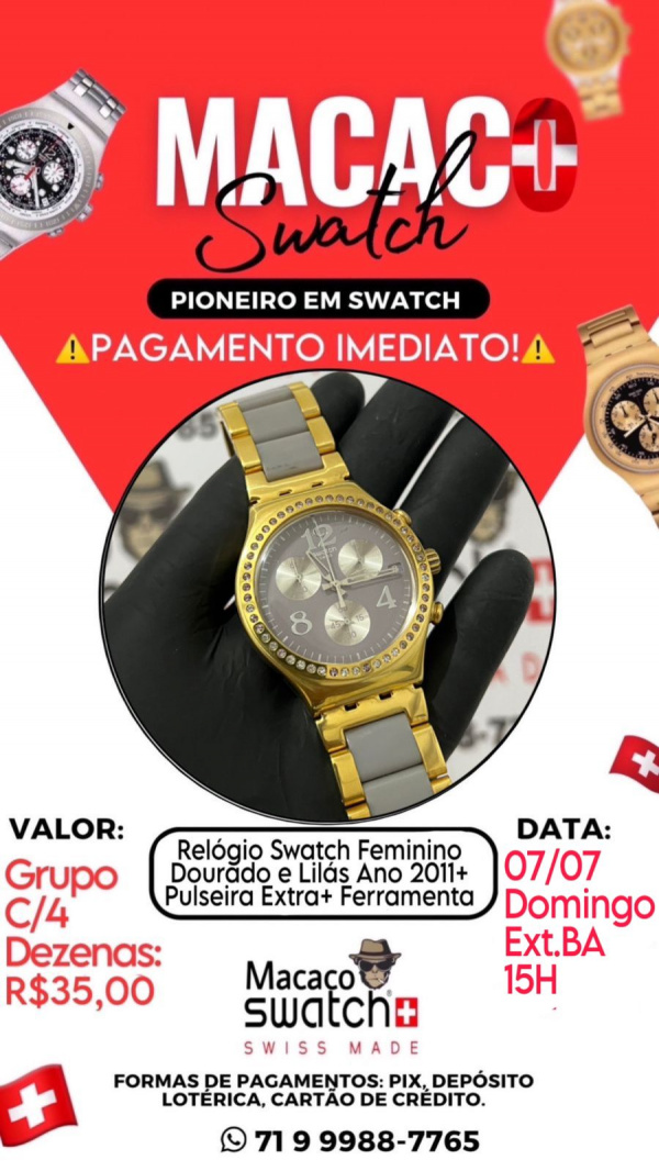 Relógio Swatch Feminino Dourado e Lilás Ano 2011+ Pulseira Extra+ Ferramenta