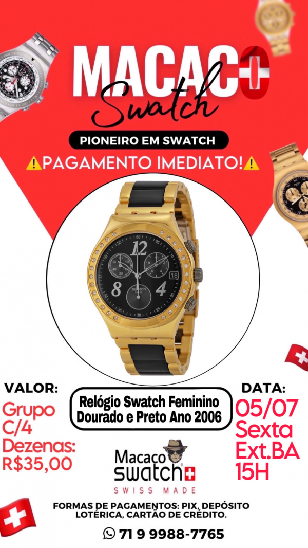 Relógio Swatch Feminino Dourado e Preto Ano 2006