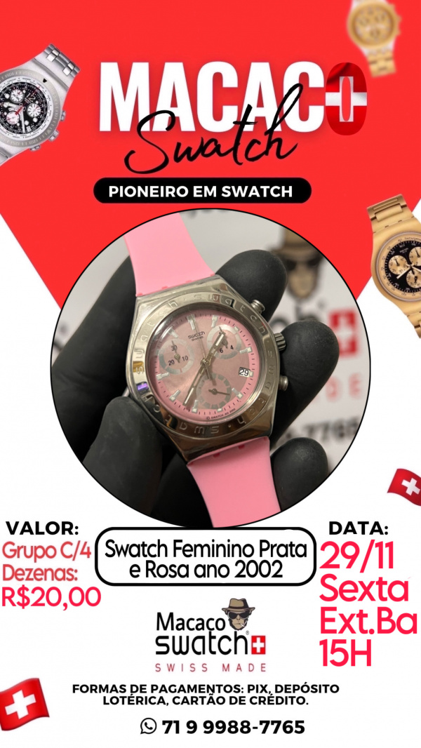 Swatch Feminino Prata e Rosa ano 2002