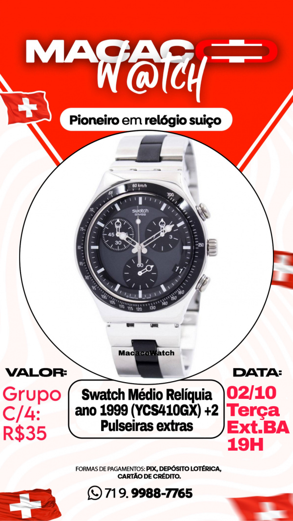 Swatch Médio Relíquia ano 1999 (YCS410GX) + 2 Pulseiras extras