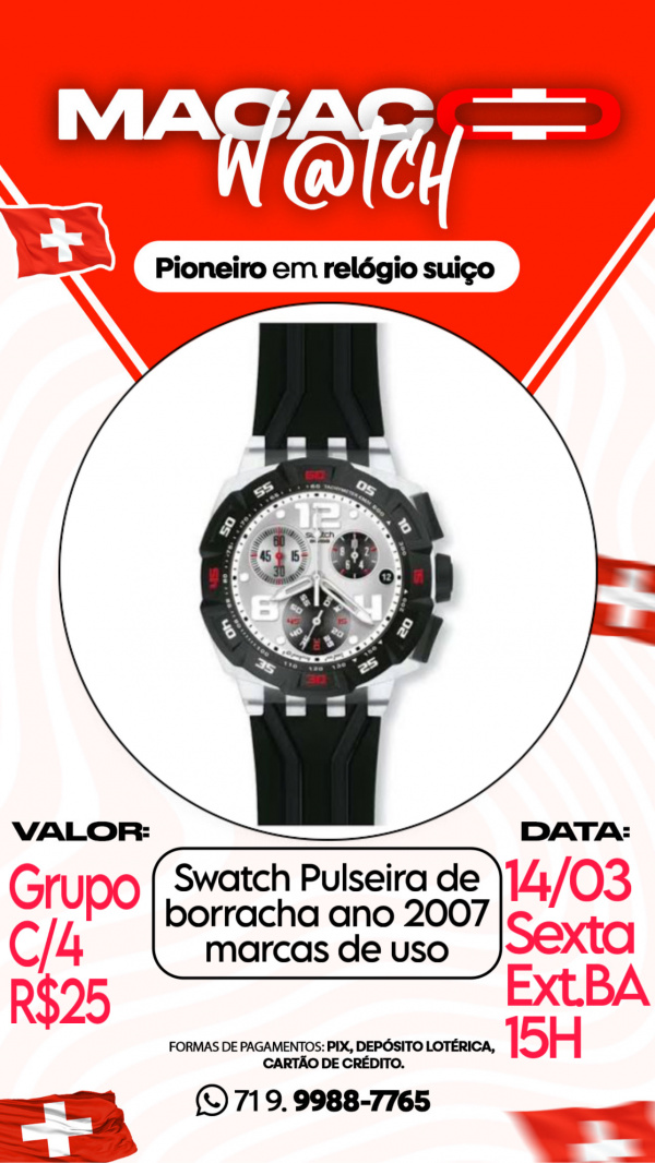 Swatch Pulseira de borracha ano 2007 marcas de uso