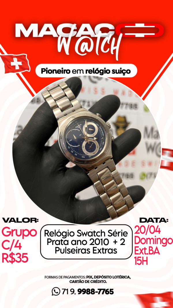 Relógio Swatch Série Prata ano 2010 + 2 Pulseiras Extras