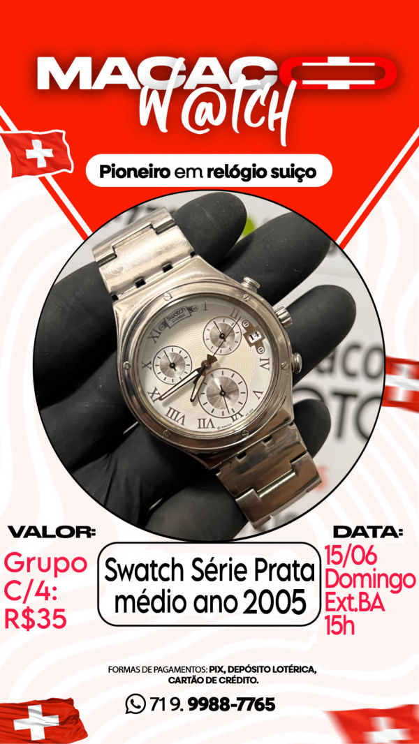 Swatch Série Prata médio ano 2005 + Pulseira Extra de couro
